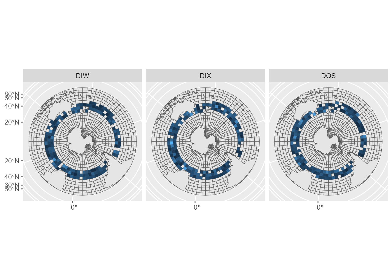 ggplot(map_deaths) + geom_sf(data = sefraInputs::grid)+ geom_sf(data = sefraInputs::southern_map) + geom_sf(aes(fill = value), col = NA) + facet_wrap(~species) + guides(fill = "none")